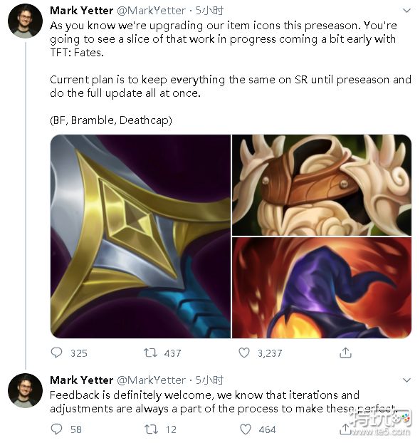 我们会在季前赛前重绘所有装备的图标,这些图标你有可能在云顶之弈S4中提前看到。不过我们当前的计划是在普通模式中,所有图标会保持现有的样子,直到季前赛的时候一次性全部更新。