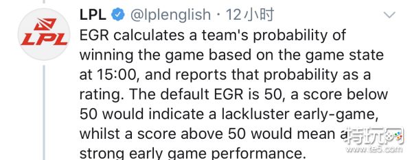 (EGR)是根据比赛的前15分钟的游戏状态来计算战队获胜的概率,其中默认值为50,高于50即游戏前期战队表现良好;低于50游戏前期即表现欠佳。