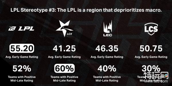 LPL官推更新了对四大赛区赛事的数据分析,其中得出:LPL是一个能利用前期优势滚起雪球并获得游戏胜利的赛区。