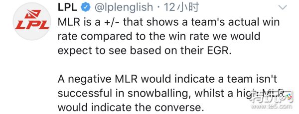 (MLR)是一个+/-值,他显示了该战队的实际胜率与EGR的对比值。也就是说:MLR为正,则表示该战队根据前期优势滚起雪球而获胜;MLR为负,则结果相反。