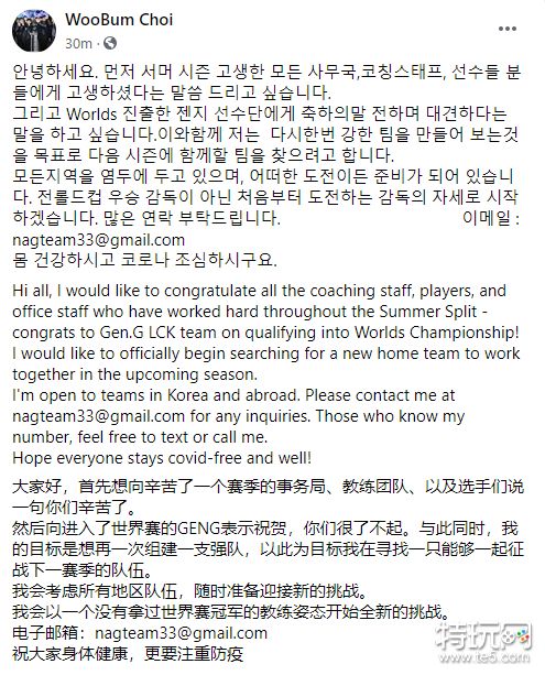 昨日GEN战胜T1成功晋级世界赛,赛后GEN的前监督Edgar对战队表示了祝贺,同时也发布了自己求职的消息。