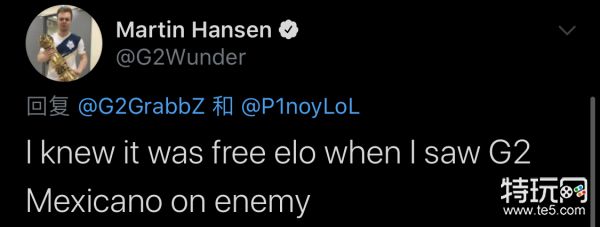 不久,Wunder在教练的推特下面评论道:当我知道P1noy(G2的替补AD)在我对面,我就知道我赢了