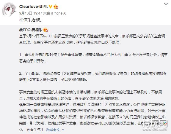 导读:Clearlove转发爱德朱声明微博 称相信朱老板