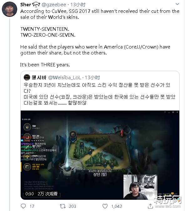 2、现在在美国工作的成员(CoreJJ和Crown)拿到了应得的分成,但其他选手没有。