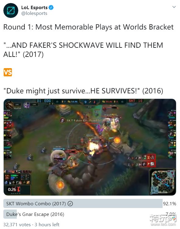 世界赛名场面比拼 9成玩家选择SKT中路完美Combo