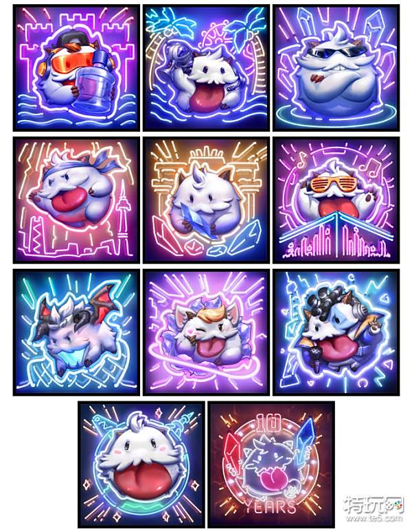 今日测试服更新,拳头放出了与历来年S赛举办地相关以及10周年魄罗图标。