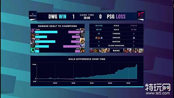21分钟:DWG率先动龙,千珏抢到了小龙,泰坦进场打残男枪后男枪交闪后撤,沙皇闪现只推回一个锤石,千珏开启大招保护己方残血的泰坦,大招结束后凯南天雷进场直接打残PSG4人,DWG趁势反打,成功团灭对手,并拿下了大龙。