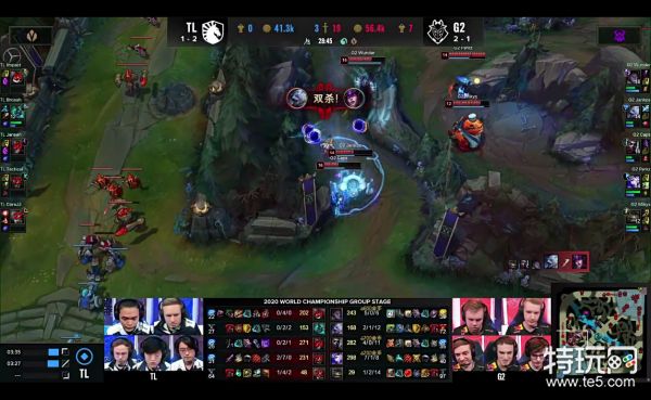 [09:10] 狗熊艾克来到下路二塔处追击TL下路双人组,塔姆大招带着寒冰跟上,TL下路双人组被击杀。