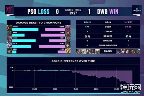 PSG前期优势无法扩大,奥恩成型DWG团战摧枯拉朽摧毁PSG,豪取四连胜。