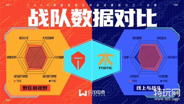 在今天的2020全球总决赛八强赛的对局中,D组第一名的TES将对阵C组第二名出线的FNC。先让我们看看两队的数据对比吧!