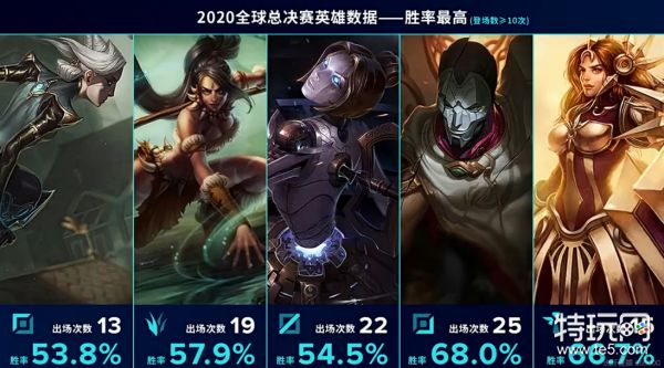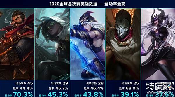 S10全球总决赛登场率最高的五个英雄分别如下: