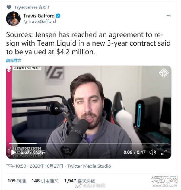 导读:资深自由撰稿人Travis Gafford:“消息源透露,Jense和TL达成了一份3年420万的合同。"