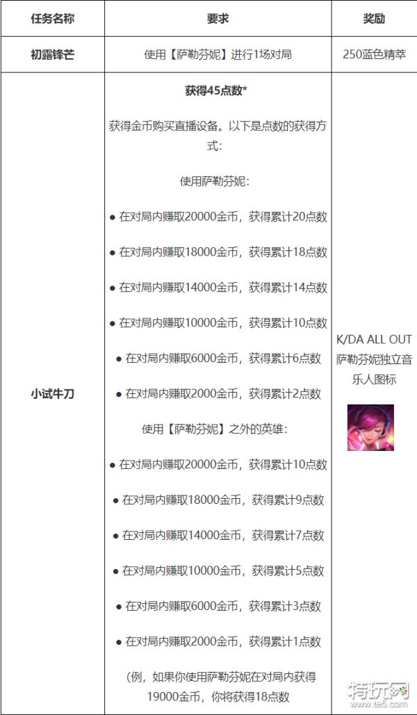萨勒芬妮的终极皮肤带有一系列任务,让你能随她一起解锁音乐道路上的各种里程碑。完成三个此类任务,你能解锁明日之星形态。也正在这时,K/DA组合发现了她的无限潜力。