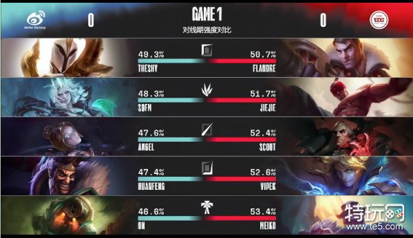 双方BO3第一局开始,蓝色方WBG,红色方EDG。