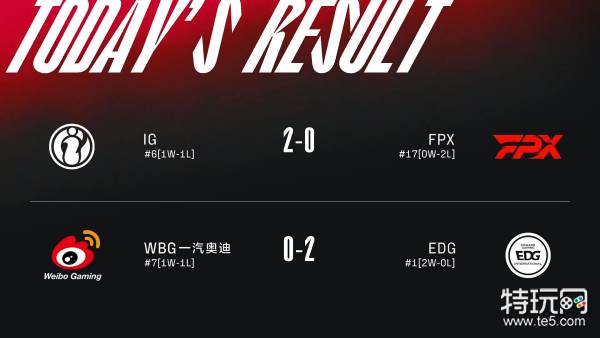 导读:今日赛果:IG 2-0 FPX,WBG 0-2 EDG!恭喜IG和EDG!fpx和wbg加油!