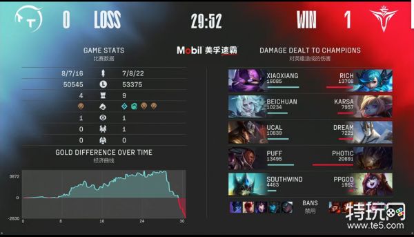 [16:45] 破败王中路抓到机会将做眼的璐璐击杀,随后在追击中被波比反杀,凯南来到正面收下波比人头,双方打出1换2,由TT控下自己的第一条小龙。