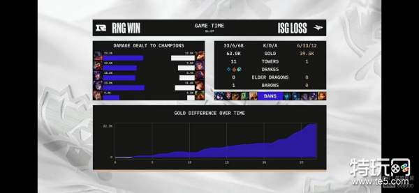 [22:51] 双方爆发小龙团战,RNG大龙加持再加上双方装备差距过于悬殊,RNG打出一波完美团战0换5团灭对手,随后拿到本场比赛第三条小龙,完成龙魂听牌
