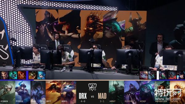 [32:27] MAD强行RUSH大龙,铁男大招关住DRX打野猪妹,MAD成功拿下本场比赛第二条大龙,但是后续塞拉斯偷的铁男大和虚空女皇单挑后成功将其击杀,由于铁男和队友脱节,DRX打出一波完美的0换4团战后一路推平MAD成功拿下本场比赛