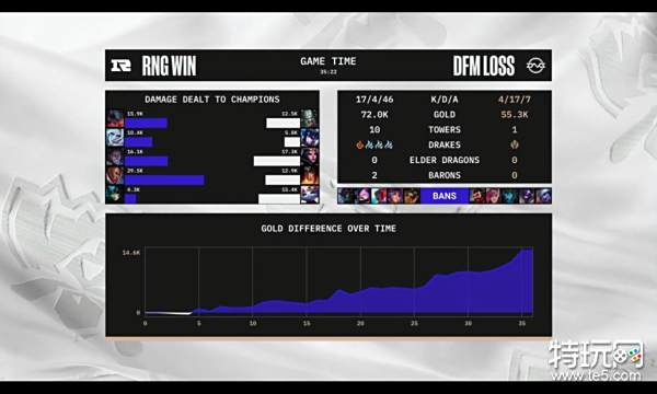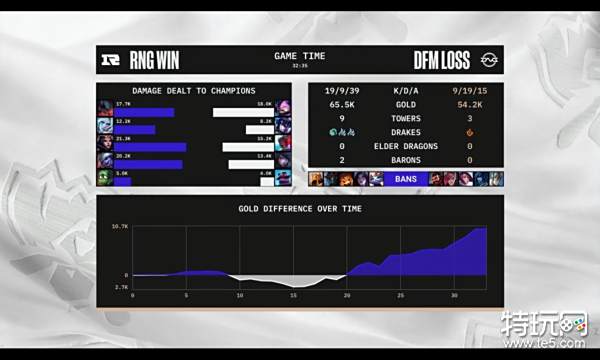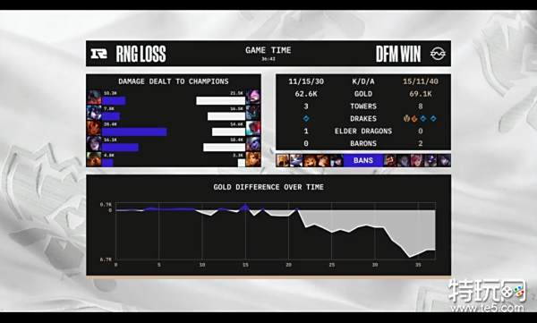 [35:00] DFM三人上路打出剑魔大招,同时RNG中路推掉DFM水晶,随后RNG上路主动包夹开团,巨大伤害碾压RNG团灭DFM后拿下比赛胜利。