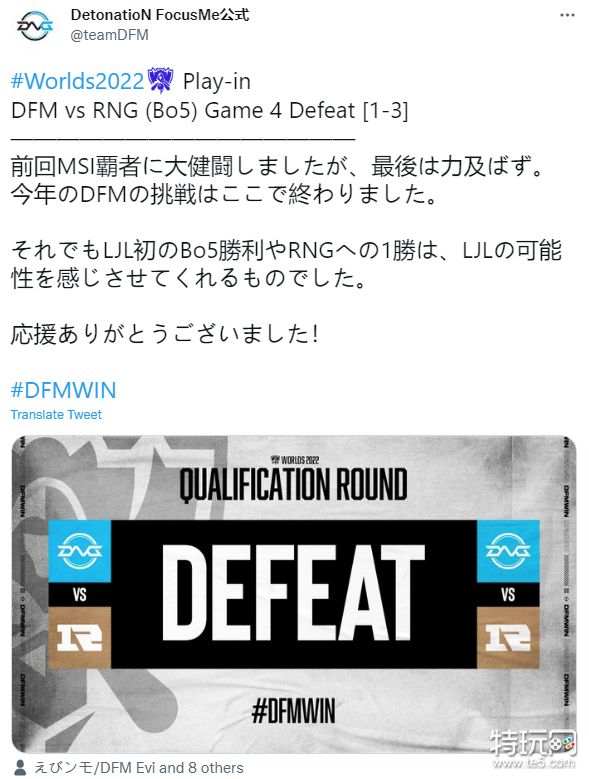 导读:DFM发推告别世界赛:感受到了LJL未来的可能性