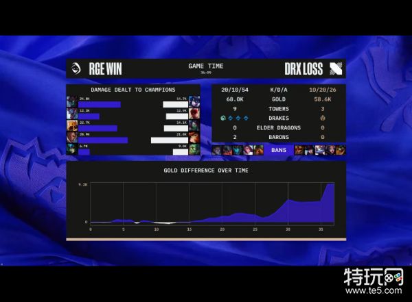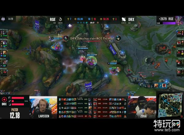 [35:01] 大树一人牵制对方全队,RGE拿下大龙后吹响进攻号角,大树大招完美角度封死DRX后路,随即再W闪进场将DRX阵型震散,双C完美输出位置完成收割,阿卡丽极限换掉娜美也未能续命,RGE打出团灭结束比赛