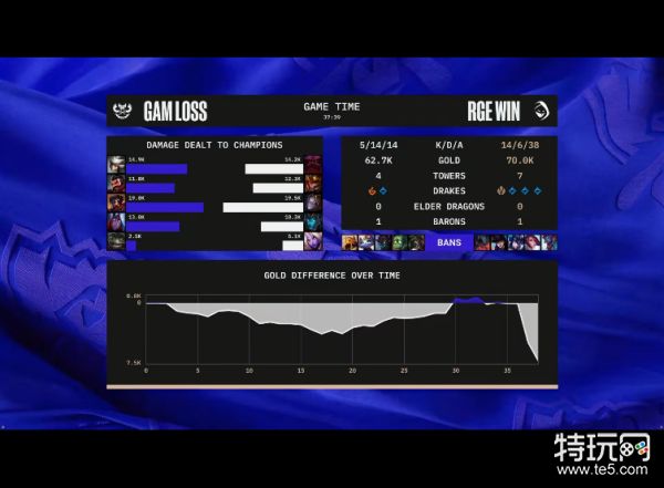 [35:17] 两边在中路围绕中线和大龙做文章,RGE率先落位开启大龙,GAM必争团不料维克托突然回家,男枪也没能再显神威,RGE拿到大龙后利用扎实的阵容将对手逐个击破,发条三杀收尾,RGE有惊无险战胜对手
