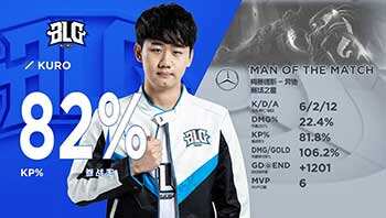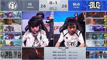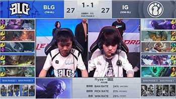 BO3的第一局比赛。对于BLG的阵容,IG更偏向于支援。而BLG则能有更多的寻找节奏机会。