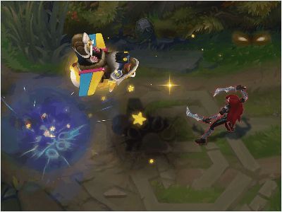库奇的Q技能在使用时会迸发出小星星,这些炸出的小星星会帮助库奇打出不错输出。