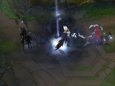 卡莎被动技能像羽毛打在对手的身上,有点霞的味道,不过漆黑的画风与山水不谋而合。