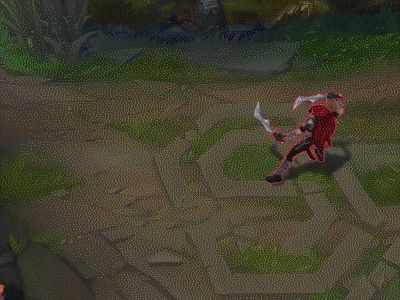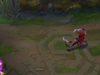 卡特回城特效的刺客属性非常的明显,卡特会利用平砍去将PK台上的柱子一个斩断。