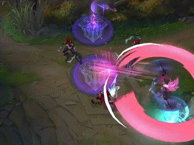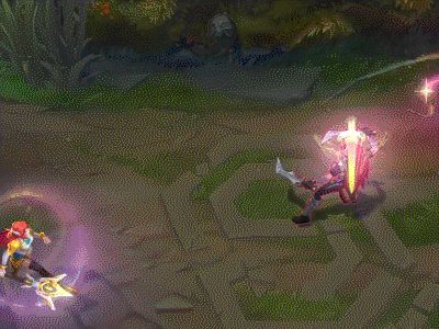 而拉克丝的E技能不再是那种炽热如火的感觉,而是一种粉色系的法阵即将有爆发感。