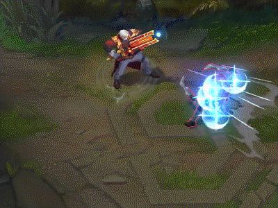 杰斯的W技能的特效没有做太大的变化,唯一给人的感觉就是炮形态下的W更滑了些。