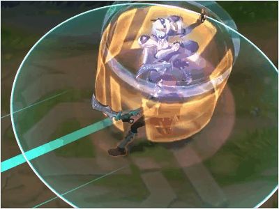 源计划刀妹的E在施加的时候会给到粉红色的锋刃,然后连线打出控制,特效一般。