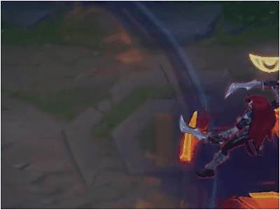 阿卡丽的E会施加红色的标记,然后再翻越地形近身颇有一些腥红之月的特效既视感。