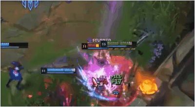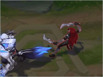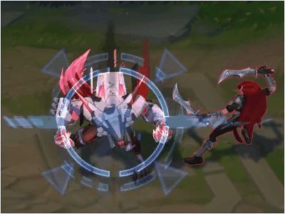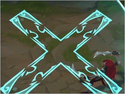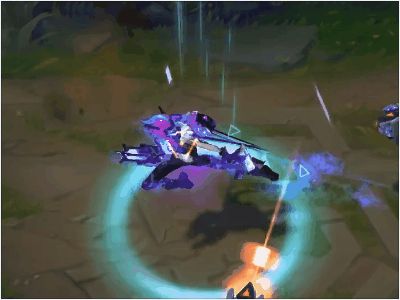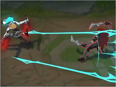 这个R技能在跃向对手的时候会打出多重的标记效果,然后打出多下的攻击效果。