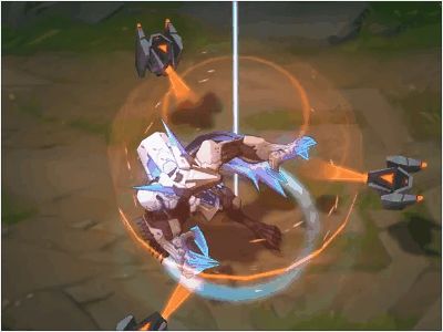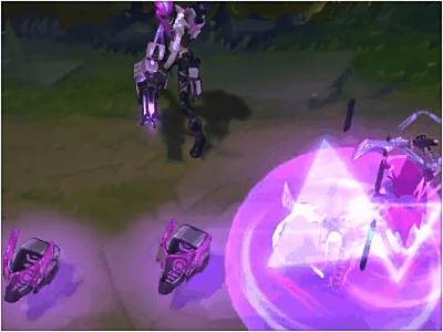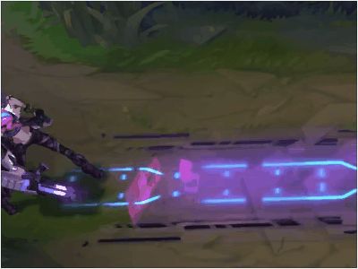 金克丝的回城特效会利用枪炮将类似监视小飞机全部打落,有一种专业的侠盗的感觉。