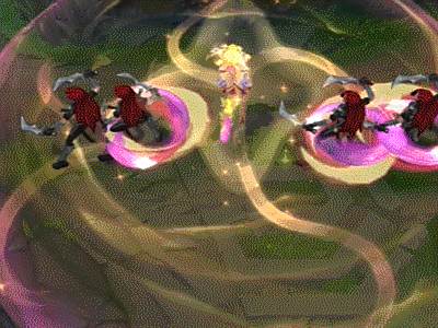 洛的E技能则是充满着黑魔法的能量,在冲向队友的同时会给附带上黑色的包裹。