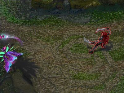 洛的R技能会给自己包裹着一层黑暗的铠甲,然后获得冲刺的效果,特效感十足。