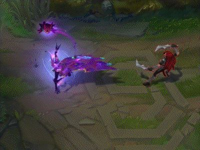 洛的回城特效跟霞有一些类似的地方,不同的是洛是由原先的光明慢慢黑化的一个过程,效果明显。
