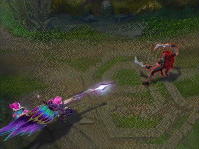 霞打团的时候可以利用Q配合R打出输出的效果,霞在满天飞羽的时候会打出倒刺然后衔接E技能的输出控制的能力都非常强,这套技能的爆发效果很强。
