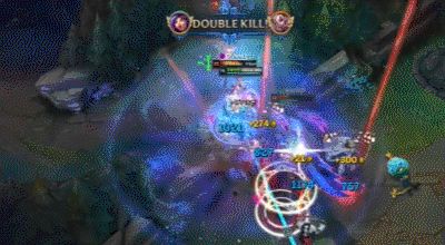 妮蔻还有一种起手方式是利用W技能分身进场然后给到R技能打出爆发性的输出效果,然后衔接后手的E控再跟进Q打输出,这套连招的爆发能力更高。